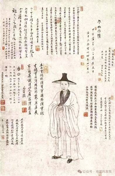 r《个山小像》中,有诗有画,有人物环境,有心理状态,有服饰道具,有可以比附想观的前辈文人。后代谁画朱耷,都不会离开这个画境。僧袍僧履,袍袖宽大,右衽;区别只在于掩履还是及履;凉笠,区别在于戴着还是拿着;然后就是对颅形和眼眶深浅程度的创作感觉了。